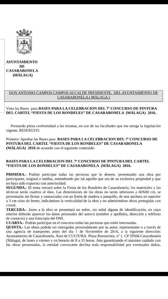 Las Bases para el VII Concurso de pintura de Los rondeles son las siguientes.