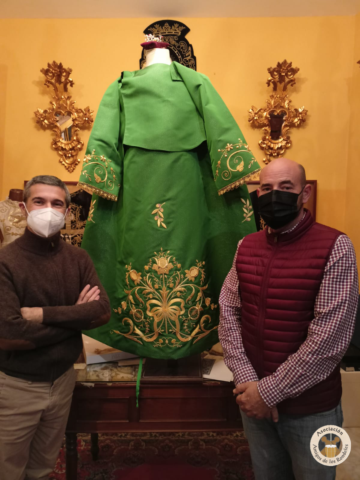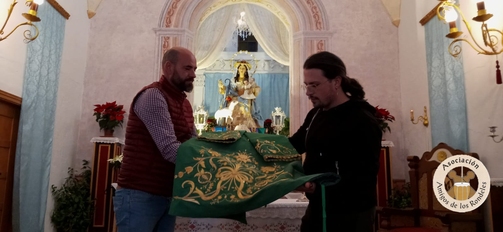 La Asociación Amigos de los Rondeles ha aumentado el ajuar de la Divina Pastora con una nueva saya bordada, que ya luce Nuestra Señora en la Ermita de la Veracruz, preparada para su salida procesional de mañana, 12 de diciembre.