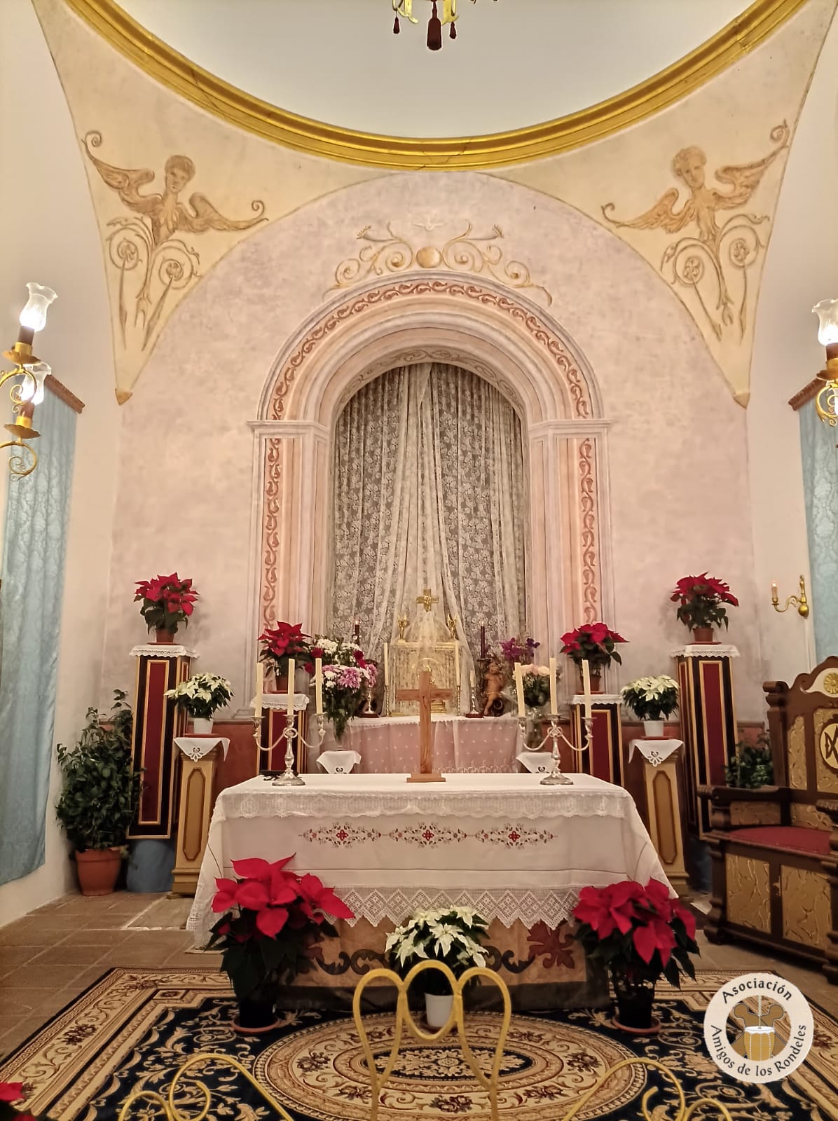 Ya se encuentra el camarero de Nuestra Virgen, en la intimidad del camarín de la ermita de la Veracruz, vistiendo a María Santísima Madre del Buen Pastor, Virgen de los Rondeles, para su día grande.