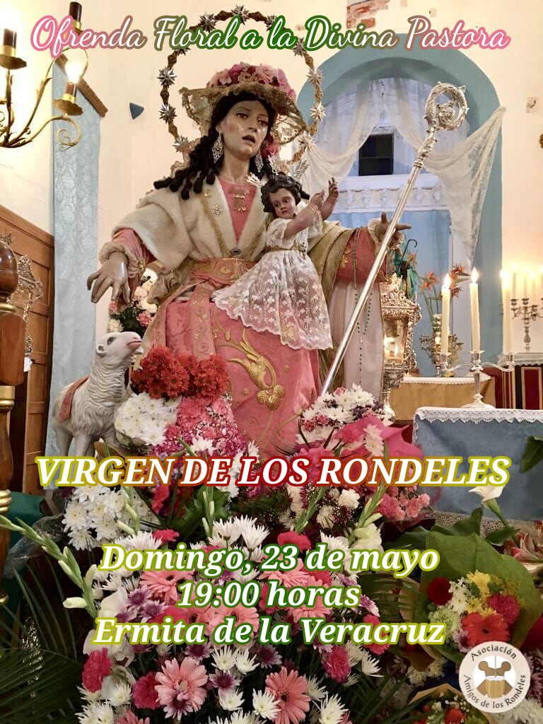 El domingo, día 23 de mayo, a las 19:00 horas, se celebrará en la Ermita de la Veracruz, la tradicional Misa y Ofrenda floral a María Santísima del Buen Pastor, nuestra querida Virgen de los Rondeles.